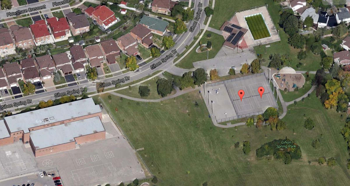 This tennis court is one of two at this 3.5 hectare park near Martingrove Road and Steeles Avenue West. The park also features a baseball diamond, basketball court and a children's playground. The Gihon Springs Outdoor Pool is located at the north end of the park. Please note that casual tennis play is on a first come, first served basis and may be subject to closure and unavailability during winter seasons.