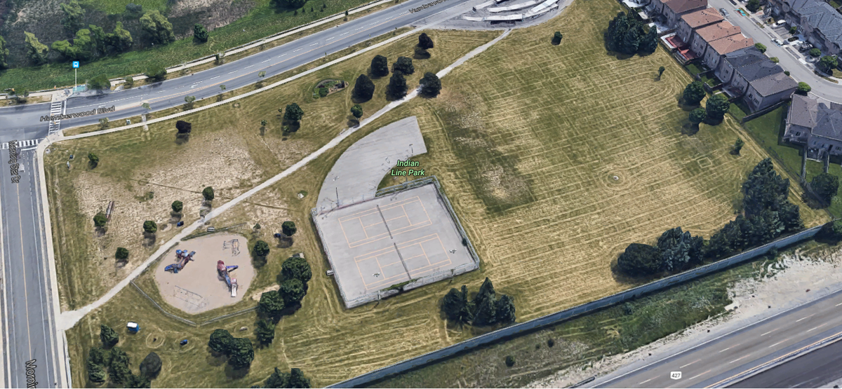 This tennis court is one of two on location at this 2.4 hectare park near Rexdale Boulevard and Highway 427. The park also features three basketball courts, a children's playground and an open green space. Please note that casual tennis play is on a first come, first served basis and may be subject to closure and unavailability during winter seasons.