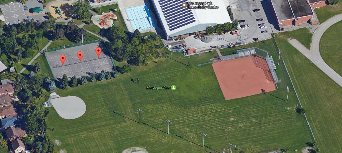 This tennis court is one of three at this 3.9 hectare park on Lawrence Avenue East near Birchmount Road that also features two ball diamonds (one with lights), two basketball courts, a splash pad and a children's playground. The Park is adjacent to the McGregor Park Recreation Centre. Please note that casual tennis play is on a first come, first served basis and may be subject to closure and unavailability during winter seasons.