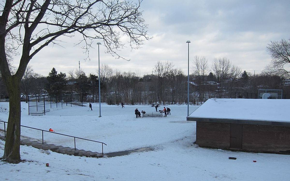 This ice rink is located in in a community park where it is a popular spot for a game of Shinny Hockey. There are benches for spectators and a building, usually open, for changing into your ice skates. A small parking lot is available for those who drive to the park. The park is west of Royal York Road on the south side of The Westway. Please note that the use of this ice rink is dependant on the operating schedule, closure dates, availability and accessibility as govered by the City of Toronto. It is also dependant on weather conditions fit for skating. For more information, please visit the City of Toronto website of this space.